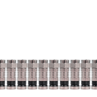 Los Conectores RG6 están diseñados para cable COAX cuádruple RG6/6 para una terminación rápida y sencilla de cables para satélite, TV por cable y módems por cable.